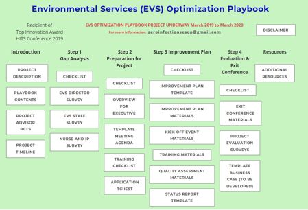After initial efforts and successes, the ESOP© Project moved the Playbook to a web-based platform. Participants suggested simplifying the number of steps initially identified as needed for the Playbook as too many people were wary and quite overwhelmed by the initial ten steps of the Playbook. Thus, a review — based upon feedback from all stakeholders — was undertaken, and a four-step process enacted. Surveys were initiated to expand beyond EVS and look at the perceptions of IPs and clinicians, and, most significantly, added an expert advisory panel to support the study sites. The survey indicated what needed focus. Then, based upon the results of the study, experienced advisors in the identified areas were offered to the study sites.